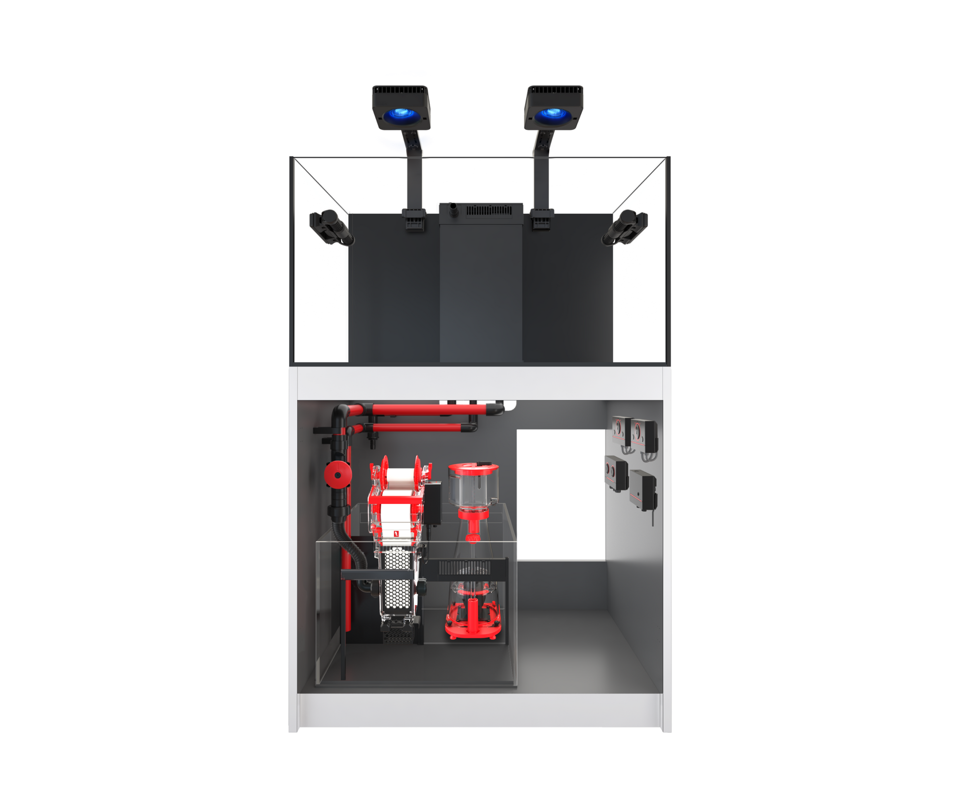 Équipé d’origine avec l’éclairage ReefLED, l’écumeur REEFER Skimmer, et le ReefATO+ pour une gestion automatique du niveau d’eau.