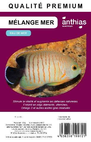 Mélange mer est un mélange de nourriture congelée spécialement conçu pour les poissons marins. Enrichi en oligo-éléments il contient une combinaison équilibrée d'ingrédients naturels riches en protéines, favorisant la croissance, la vitalité et la coloration de vos poissons récifaux.