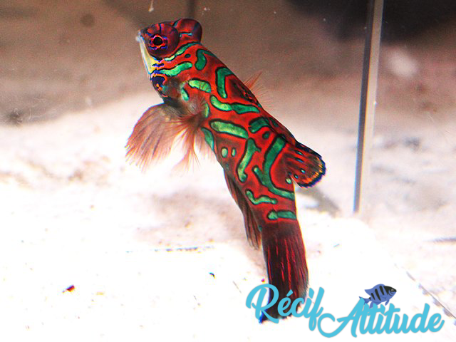 Synchiropus splendidus – Poisson-mandarin (vert ou rouge) de la famille des Callionymidae. L’un des poissons marins les plus spectaculaires grâce à ses couleurs psychédéliques vert, bleu, orange et rouge. Très apprécié en aquariophilie pour son allure paisible et son comportement de chasseur de microfaune, mais réputé difficile à maintenir à cause de ses besoins alimentaires spécifiques.